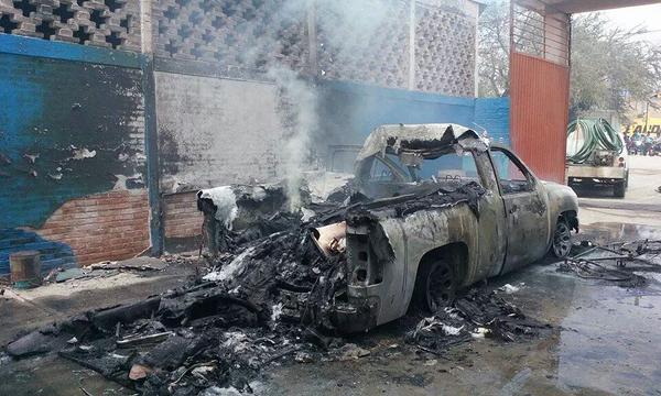 Cerca de 80 presuntos estudiantes de la Escuela Normal Raúl Isidro Burgos, atacaron la tarde de este sábado las instalaciones de la comandancia municipal de Tixtla, lo mismo que incendiaron una camioneta de la policía.