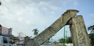 VIDEO: Se DESPLOMA arco de bienvenida del municipio de COATZINTLA en...