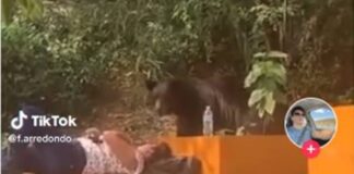 VIDEO: OSO se acerca a ESTUDIANTE que dormía en una banca...