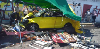 VIDEO: AUTOMÓVIL embiste a MOTOCICLISTA y se estrella contra los PUESTOS...
