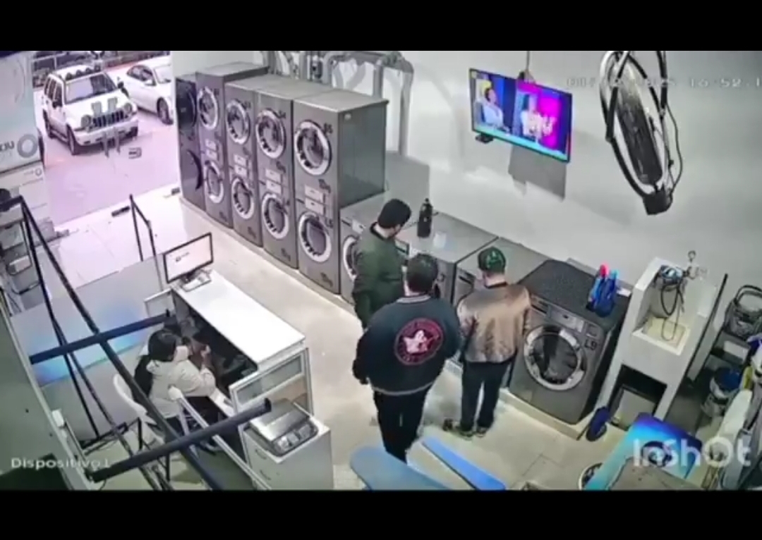 En las imágenes puede verse cómo los tres sinaloenses están en la lavandería cuando de repente entran presuntos sicarios disparando sin ningún tipo de miramiento.