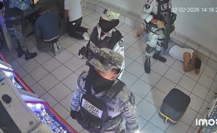 Un video que fue publicado en redes sociales exhibió a cuatro elementos de la Guardia Nacional dentro de un establecimiento ubicado en la comunidad Ejido de Peñuelas, Aguascalientes, donde se aprecia que presuntamente se apoderan de cierta cantidad de dinero y también agredieron a una persona que se encontraba en el lugar.