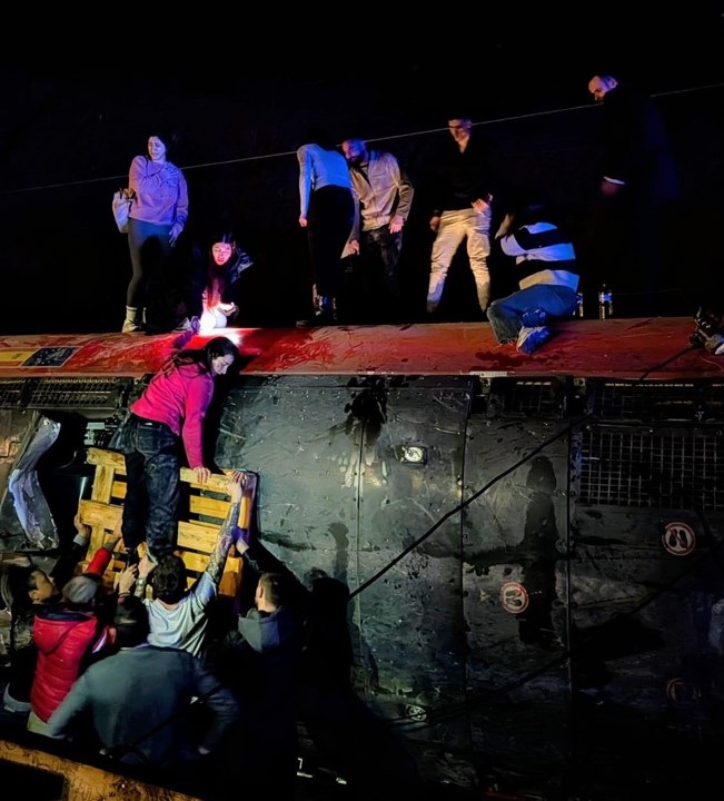 - De hecho los primeros en ayudar a los afectados fueron los vecinos de la zona, que se organizaron de inmediato para llevarles comida, agua y mantas para el frío, además de alojar en sus propias casas a los que se podían mover y caminar hasta el pueblo. Así hasta que fueron llegando los servicios de emergencia sanitaria, la Guardia Civil, que fue la primera en desplegarse en la zona, y la Unidad de Emergencia Inmediata del Ejército español, que está ayudando en las tareas de rescate dada la dificultad del operativo, ya que los trenes quedaron convertidos en auténticos amasijos de hierro.
