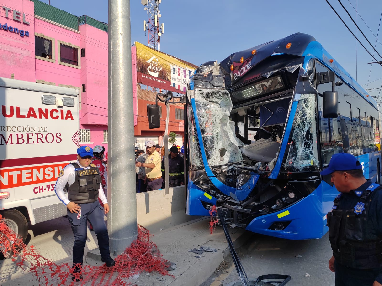 Este jueves se reportó el choque de una unidad del Trolebús, a la altura de la estación La Covadonga, en Chalco. Los primeros reportes indican que hay, al menos, 20 personas lesionadas.