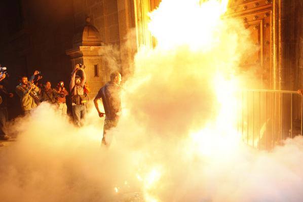 La Procuraduría General de la República toma en estos momentos la declaración de los 18 detenidos el día de ayer en la plancha del Zócalo capitalino por presunta relación con los hechos vandálicos que sufrió anoche uno de los accesos de Palacio Nacional.