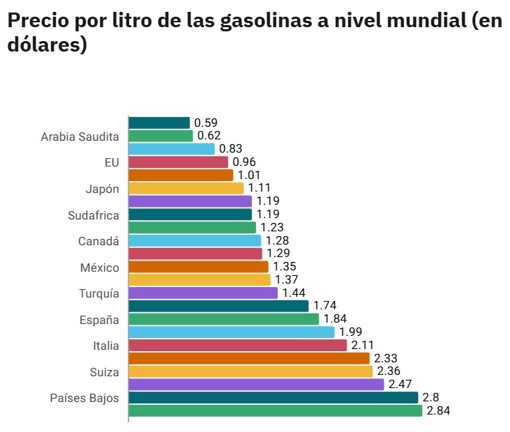Este es el precio por litro de gasolina a nivel mundial que ha obligado a algunos países como México, a implementar subsidios con el objetivo de paliar los efectos negativos en la economía.