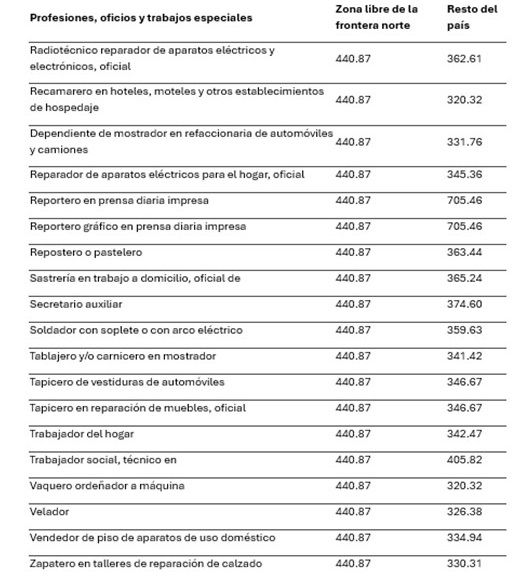 Salarios mínimos por profesiones, oficios y trabajos especiales