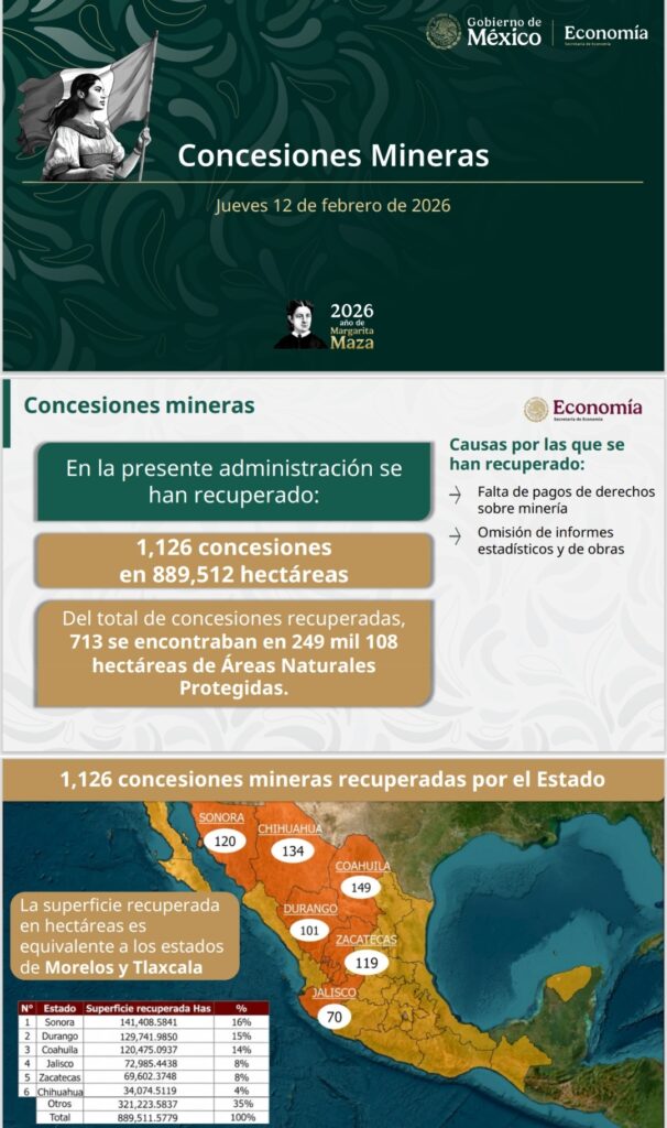 En ese contexto, anunció que su gobierno trabaja en la reversión de más de 200 concesiones mineras, las cuales regresarán al Estado mexicano, principalmente porque no se encontraban en operación.