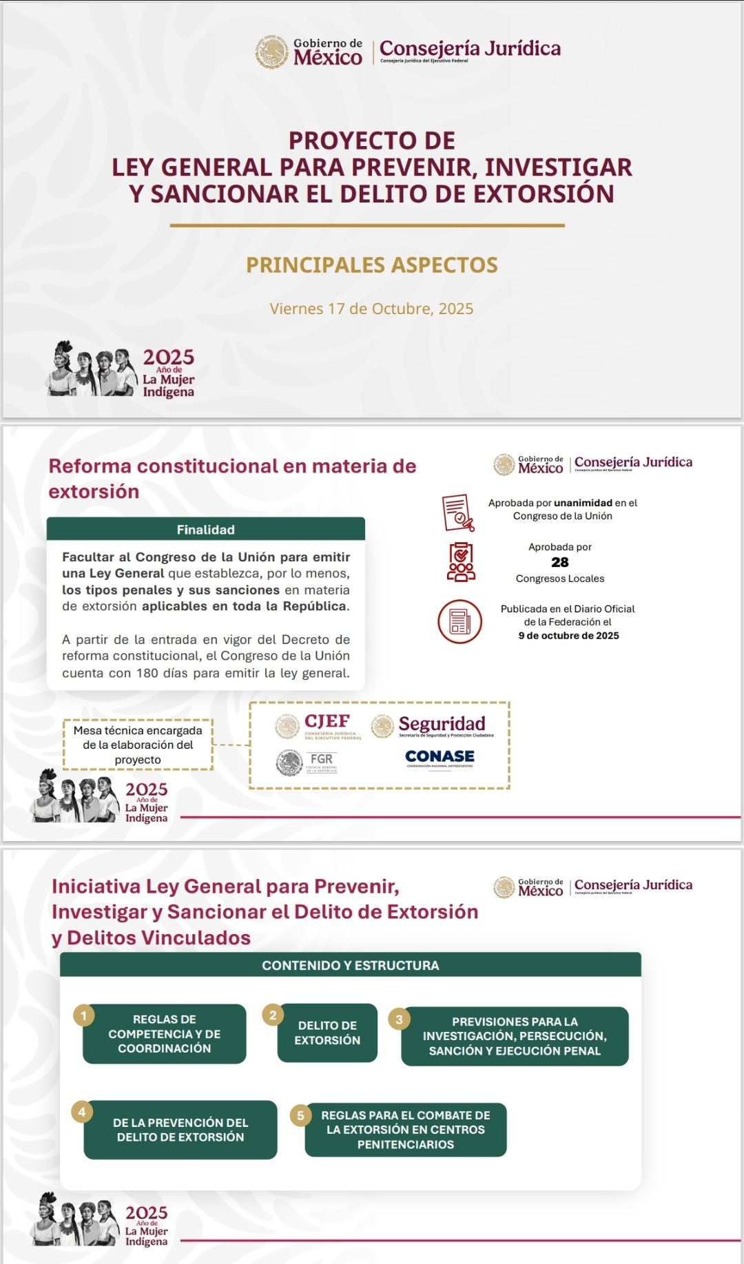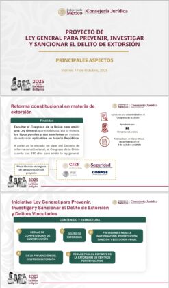También enfatizó que estas disposiciones hacen frente al avance de la extorsión y que requiere de una intervención reforzada y coordinada de las instituciones del estado mexicano para su erradicación.
