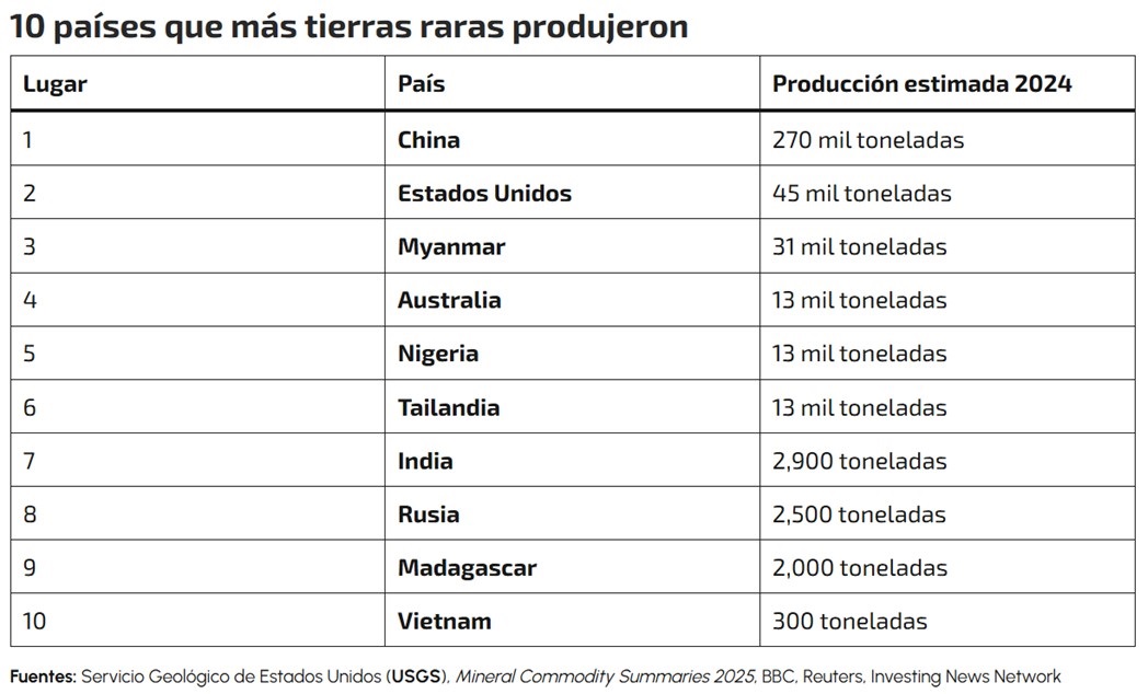 De acuerdo con especialistas, China concentra cerca de 70% de la producción mundial de tierras raras y más de 90% del refinado, una ventaja construida con políticas industriales de largo plazo.