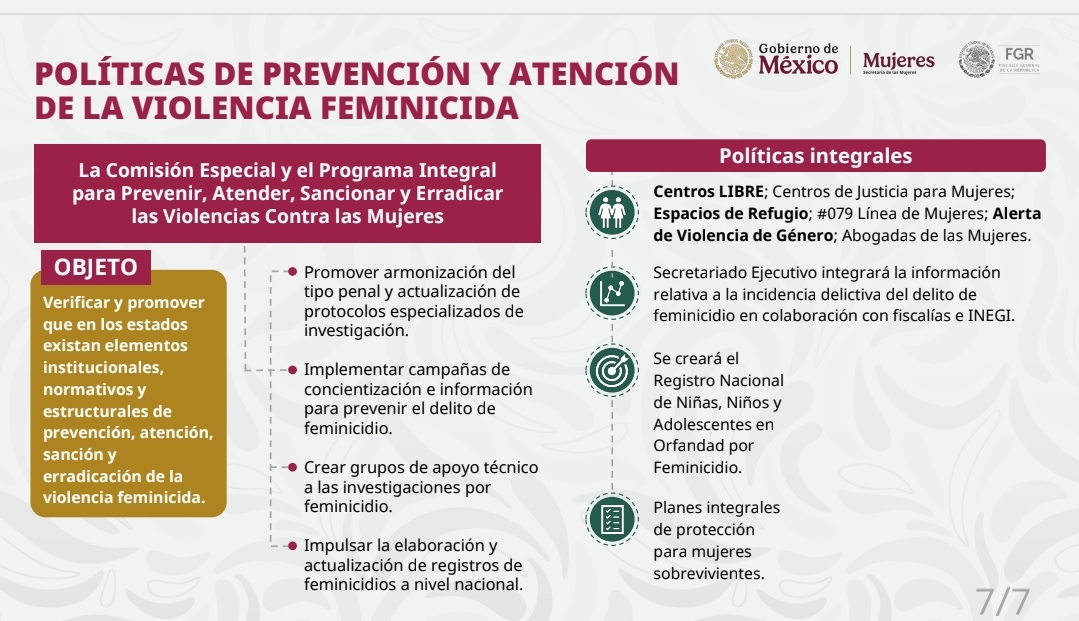 - Investigación Homologada: Todas las fiscalías del país estarán obligadas a investigar cualquier muerte violenta de una mujer como feminicidio desde el inicio.