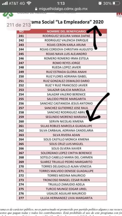 De acuerdo con quienes han proporcionado estos datos, la coordinadora de Participación Territorial, Gabriela Alejandra, tiene a 8 familiares como beneficiarios en el mencionado programa. El Jefe de Unidad Departamental de Consultas Públicas de la alcaldía, Carlos R, tiene a dos hermanos, Sandra y Sergio, en la misma situación.